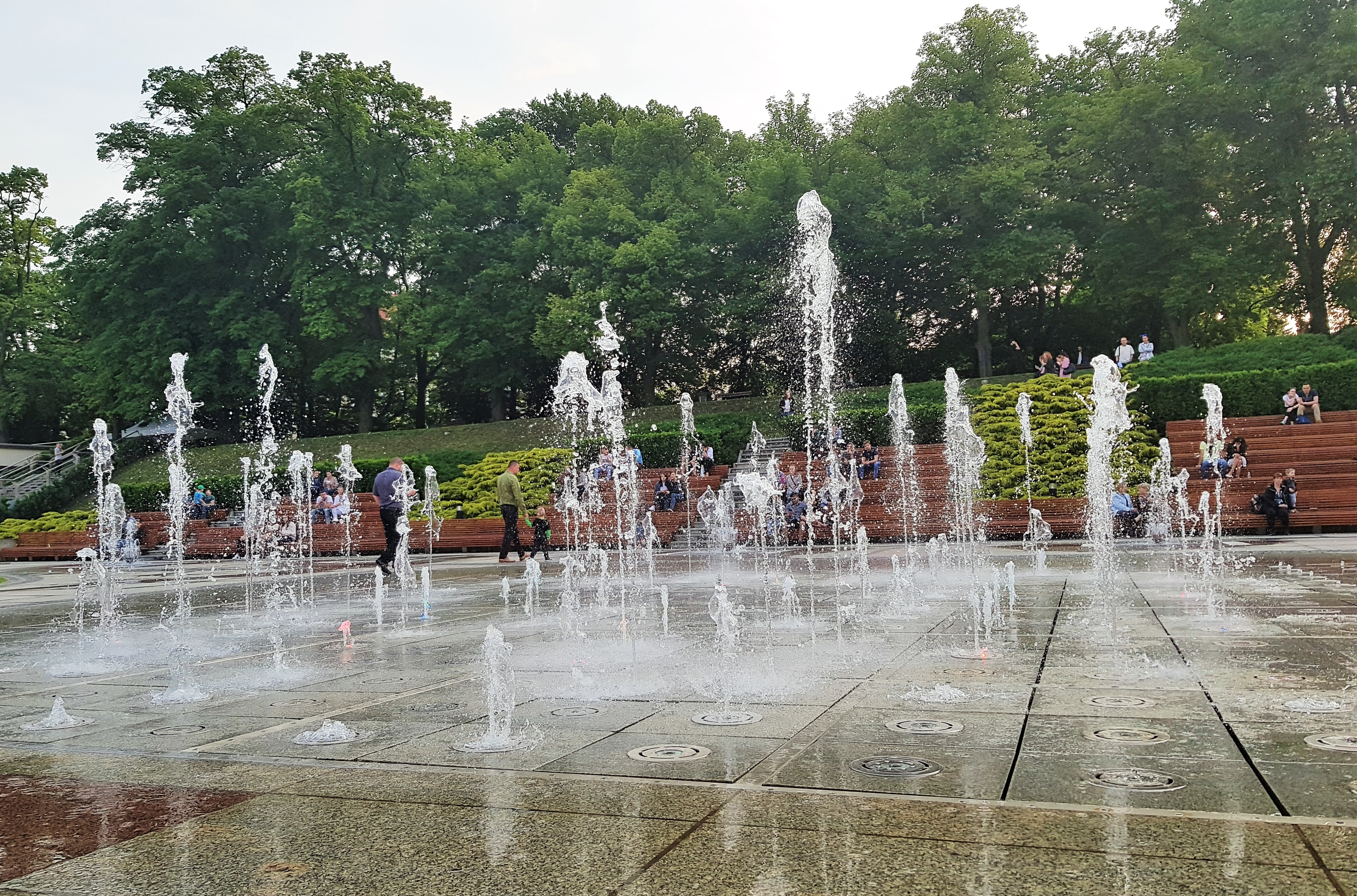 Atsigaivinti vakare visai smagu prie muzikinių fontanų. Netokie įspūdingi kaip Varšuvoje, bet sukelia mažo miestelio jaukumo jausmą.