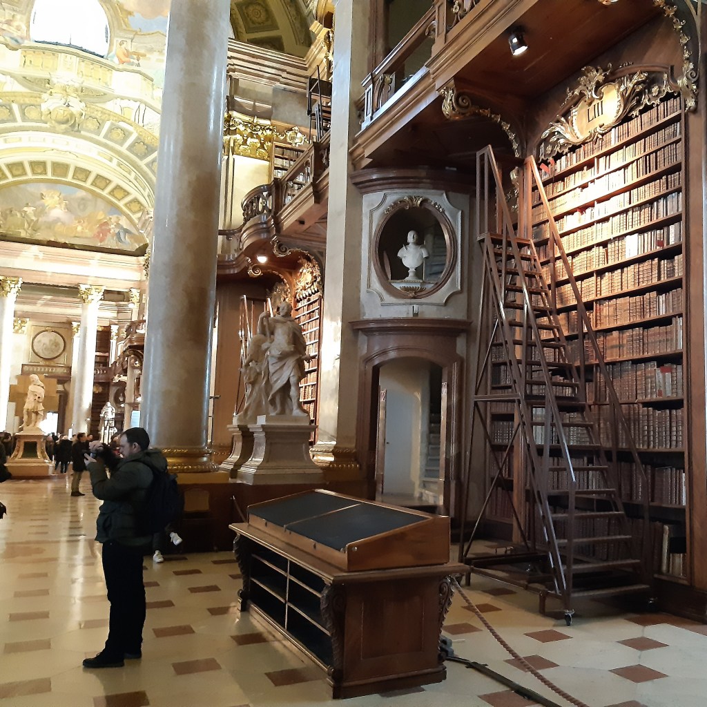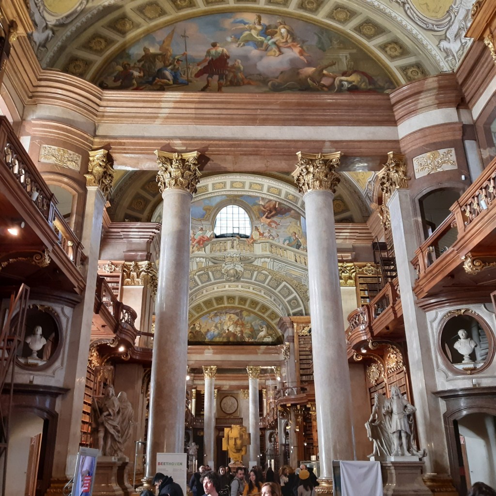 Vienos nacionalinė biblioteka Hofburgo rūmuose – jeigu nesate muziejų mėgejai, bet būnant Vienoje visgi norėtumėte aplankyti bent vieną, tegu tai būna nacionalinė biblioteka. Absolučiai nėra ko pergyventi, kad vokiečių kalbos pamokas mokykloje dažniausiai praleisdavote ir nelabai ką beprisimenate. Visų pirma, TAI reikia pamatyti (keletas nuotraukų žemiau), o kita – aprašymai yra angliškai.