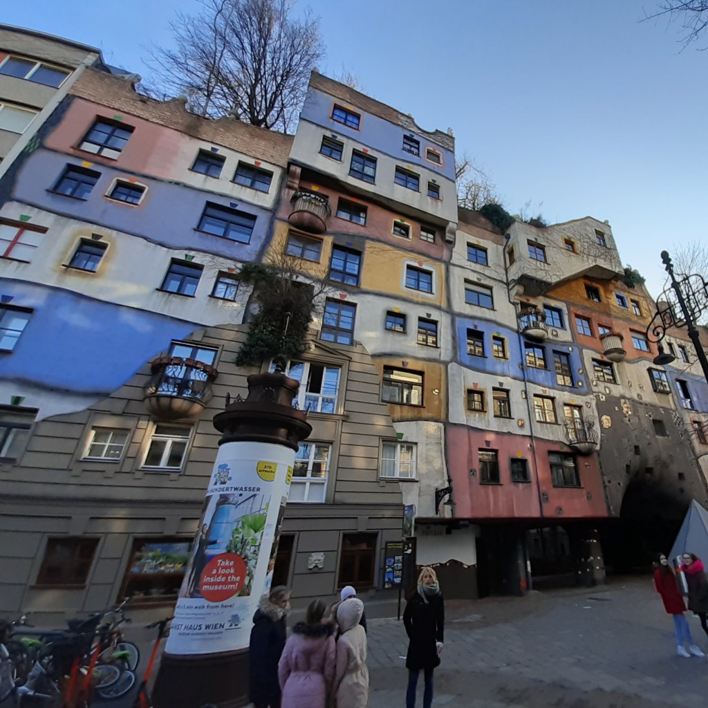 Keistuolių teatras, t.y. Hundertwasser Village – ne, nekviečiu jus užsukti į spektaklio premjerą. Tačiau po visko ką jau spėjote pamatyti Vienoje, kai jau spėjote įsimylėti į jos monumentiškumą bei priprasti, kad visur jus supa gyva istorija, staiga suprantate, kad kažko nesuprantate. Gyvenamasis namas, kuriame yra 52 būtai, 16 biurų, vidinės bei bendros terasos ir apie 250 medžių bei krūmų atrodo lyg būtų ne iš tos žemės. Tuo labiau sunku jį “įžeminti” Vienoje. Gal Barcelonoje prie Gaudi pastatų. Autoriaus mintis buvo sukurti menišką pastatą, kuris jungtų meną, gamtą bei architektūrą. Ar pavyko? Mano manymu, taip. Beje, namas yra pripažintas architektūriniu paveldu ir yra saugojimas miesto.