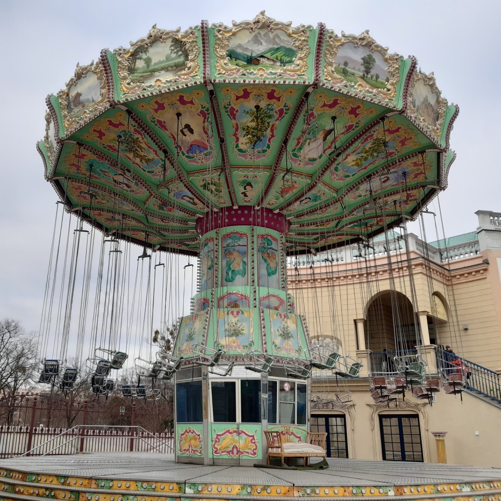 Atrakcionų parkas Prater. Sakoma, kad tai yra seniausias atrakcionių parkas pasaulyje. Čia stovintis “Velnio ratas” veikia nuo 1898 m. Beje, viena iš scenų aukščiau minėtame filme “The Third Man” yra nufilmuota būtent tame parke, o du pagrindiniai herojai savo svarbiausią pokalbį turi važiuojant ratu. Vasarą aplink parką važinėja traukinukas, o pats Praterio parkas yra viena mėgstamiausių pasivaikščiojimų vietų Vienos gyventojams. Mane sužavėjo karusėlė – tokia vaikystės svajonė, kai įsivaizduoji save su puošnia suknele, karūna ant galvos ir auksiniais bateliais.