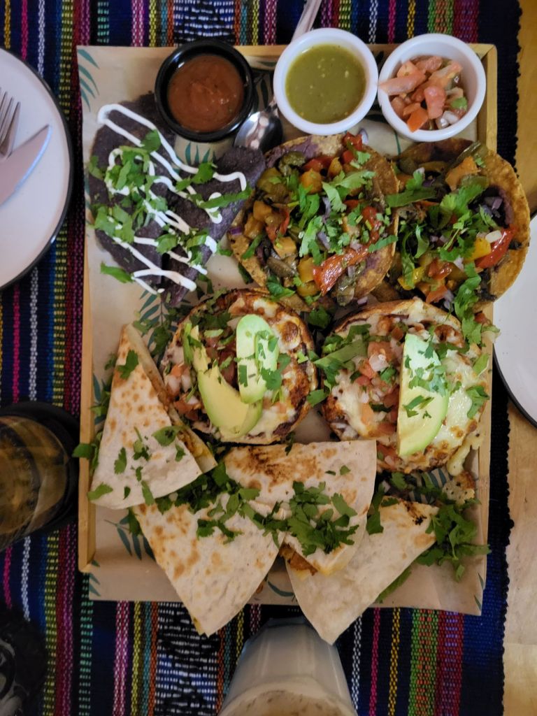 Užsakėme Antojitos Combo (86 zł) streetfood užkandžių lėkštę dviems ir gėrimus – arbatos draugei ir Agua De Horchata, kas pasirodė esantis ryžių gėrimas su cinamonais ir pienu. Bendrai su gėrimais sumokėjome 120 zł.